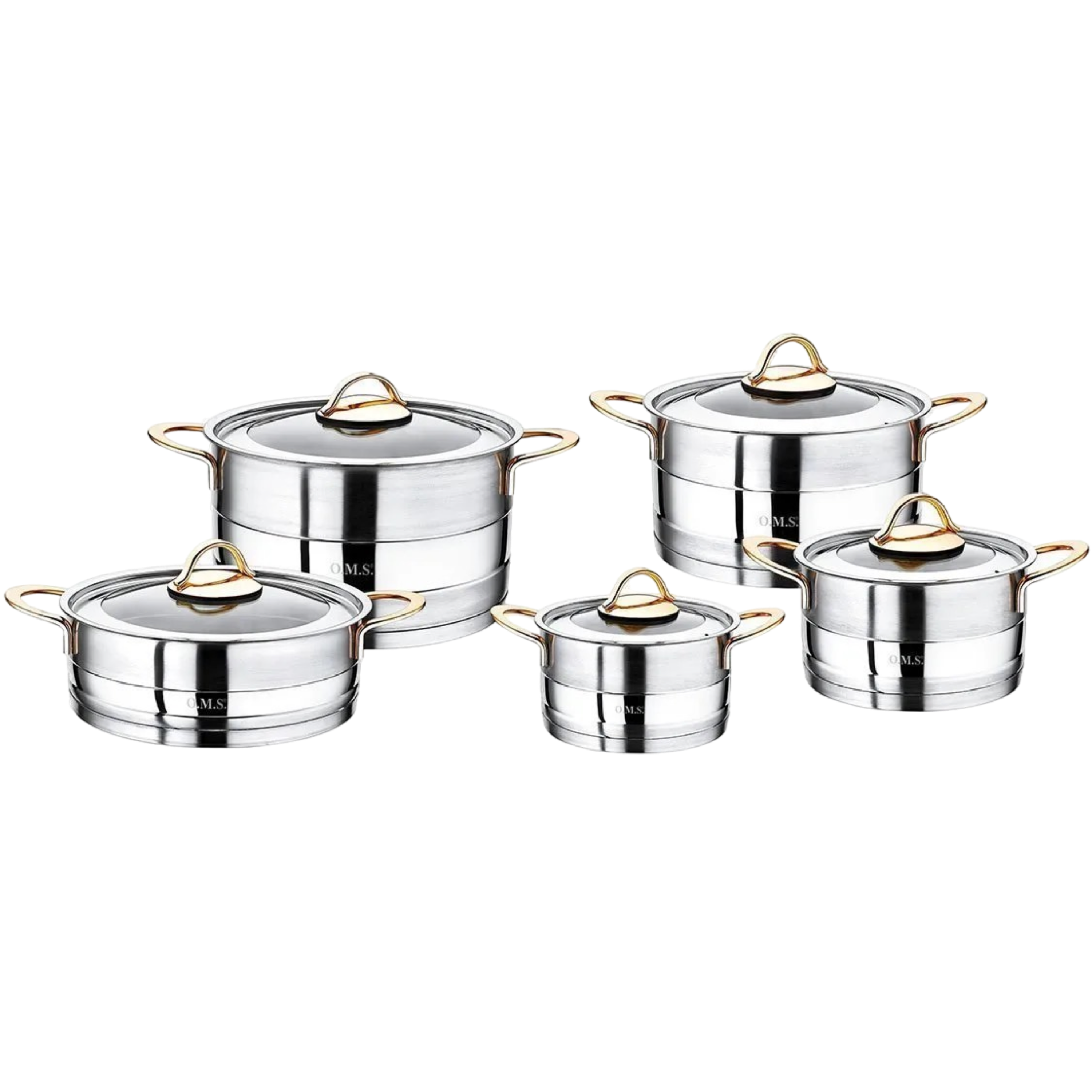 OMS 10PC STAINLESS STEEL SET GOLD HANDLE